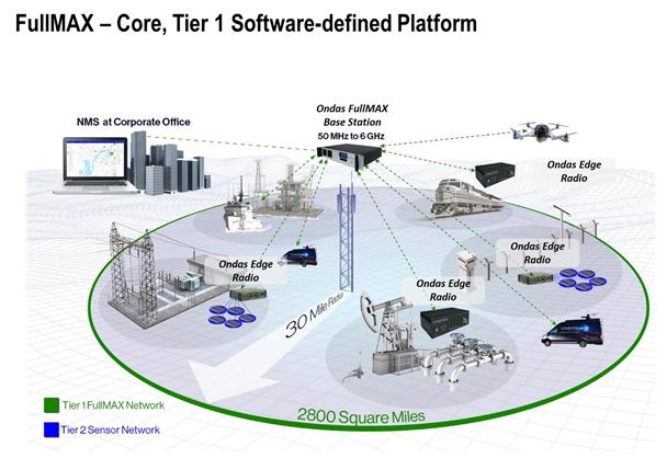 The critical software algorithms powering our end-to-end FullMAX wireless SDR platform and related Fog-computing architecture have been developed by and are owned by Ondas. FullMAX is an intelligent networking system which integrates core network management systems with edge computing resources including computing hardware and MC-IoT software applications. In the MC-IoT Fog enabled by FullMAX, base stations are enabled with a highly configurable Quality of Service algorithms which coordinate the data traffic within the Fog for both the edge radio and the resident MC-IoT applications. The intelligent base stations control and manage all network resources including the Ondas edge remotes; dynamically allocating bandwidth, prioritizing data packets and managing edge applications. The intelligent software-managed base stations determine whether to process data at the edge, distribute data traffic across the Fog to other edge remote radios or to transport information to the corporate Cloud. Ondas’ Edge remotes have embedded compute capability and are able to host MC-IoT applications including those from third party vendors via virtualized software systems managed in docker / container architectures and can also manage data from intelligent equipment or sensor networks that interface with the edge remotes in the field. The Ondas software-managed edge remotes offer security via authentication, multi-layer encryption and virtual software firewalls which are requirements for mission-critical data networks.
