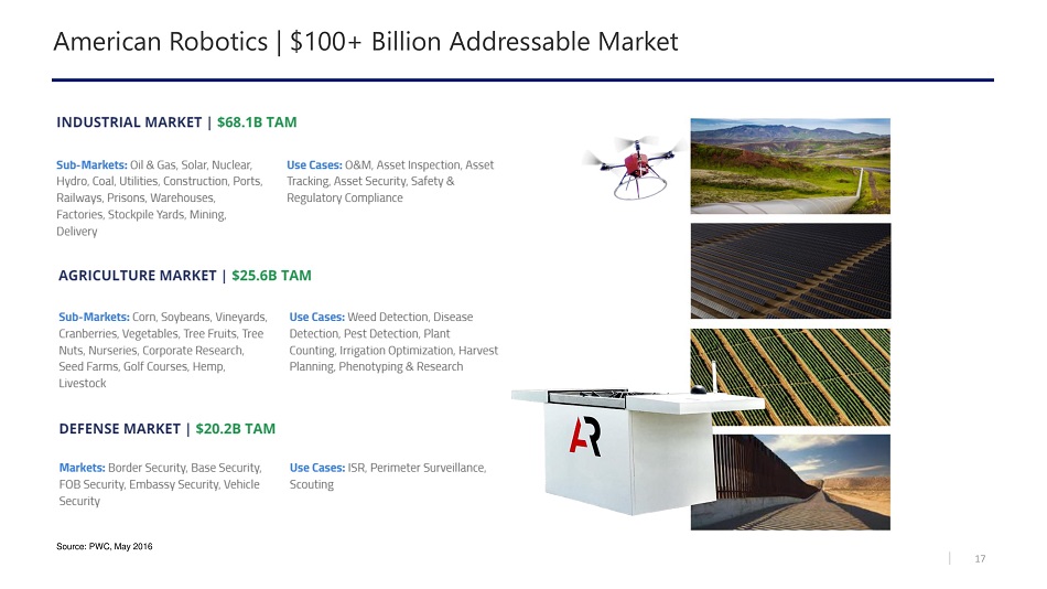 American Robotics | $100+ Billion Addressable Market 17 Source: PWC, May 2016