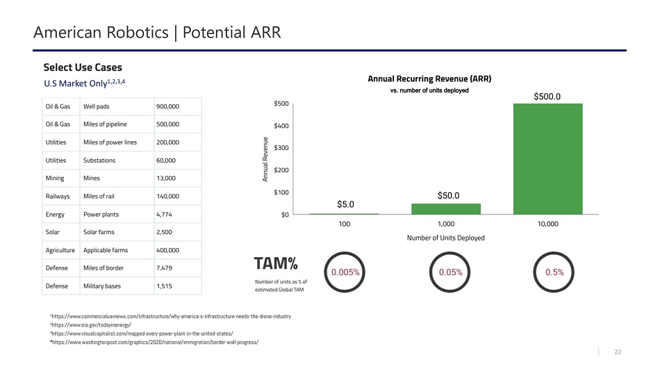 American Robotics | Scout System TM Unit Economics 21 (1) (2) (3) Note: For illustrative purposes only; Actual results may differ materially.