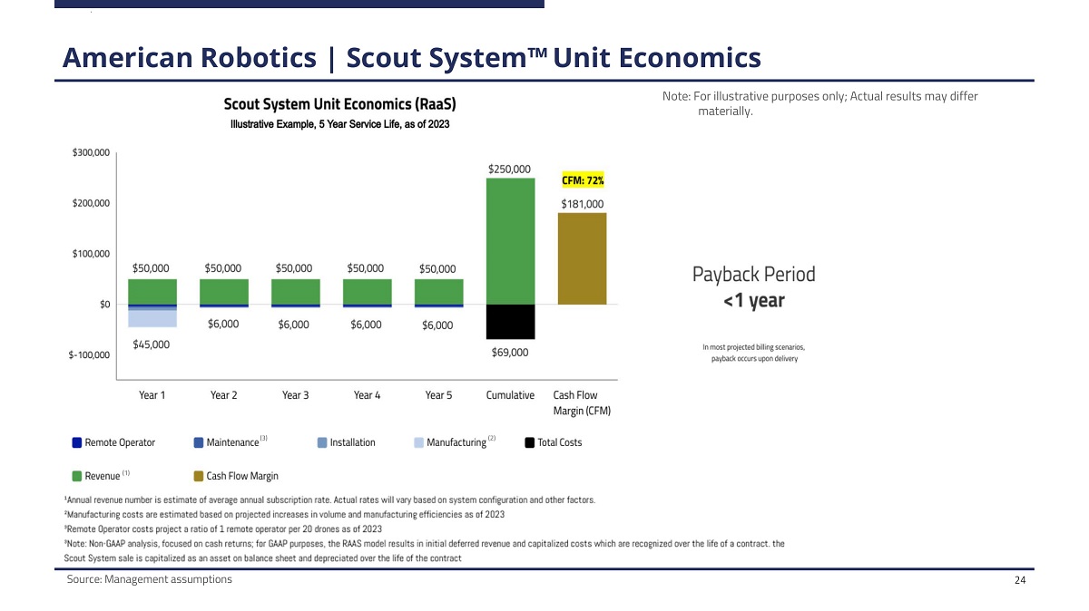 A m e r i can R o b ot i cs | S cou t S ys t e m Œ U n i t E con om i cs 24 Note: For illustrative purposes only; Actual results may differ materially. S o urc e : M anag e m e n t ass u m p t i o ns ( 1 ) ( 2 ) ( 3 )