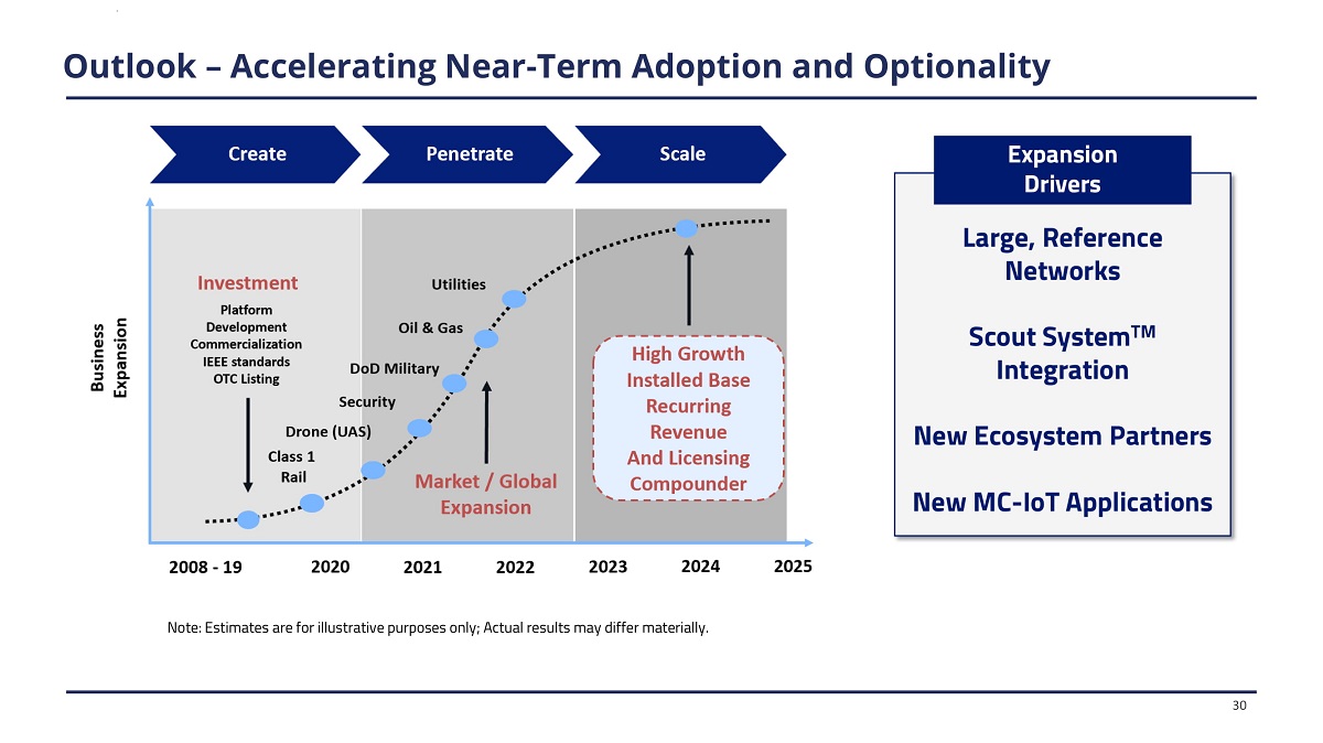 Outlook – Accelerating Near - Term Adoption and Optionality Large, Reference Networks Scout System TM Integration New Ecosystem Partners New MC - IoT Applications 30 Expa n s i o n Drivers Note: Estimates are for illustrative purposes only; Actual results may differ materially.