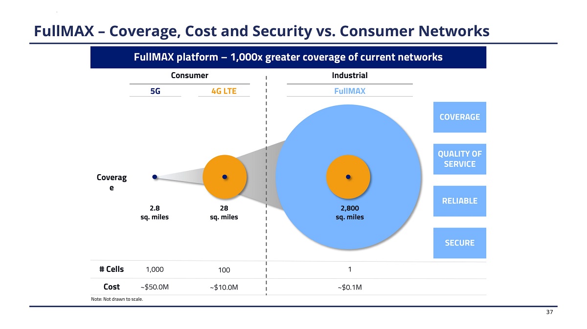 N o t e : N o t d r a w n t o sc a le . COVERAGE RELIABLE SECURE FullMAX platform – 1,000x greater coverage of current networks # Cells C ost 1, 000 ~$50 .0M 100 ~$10 .0M 1 ~$0 .1M C ove r ag e 28 sq. miles 2,800 sq. miles 2.8 sq. miles Consumer Industrial 5G 4G LTE FullMAX FullMAX – Coverage, Cost and Security vs. Consumer Networks 37 Q U A LI T Y OF SERVICE