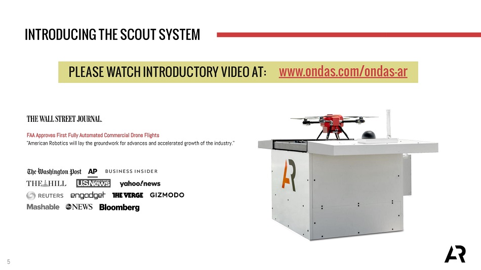 INTRODUCING THE SCOUT SYSTEM PLEASE WATCH INTRODUCTORY VIDEO AT: www.ondas.com/ondas - ar FAA Approves First Fully Automated Commercial Drone Flights "American Robotics will lay the groundwork for advances and accelerated growth of the industry." 5
