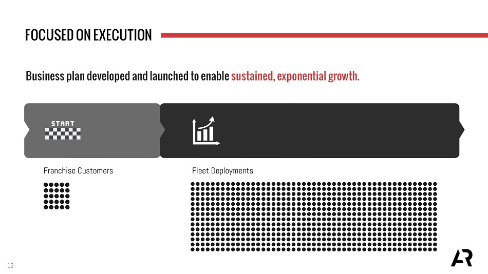 Business plan developed and launched to enable sustained, exponential growth. FOCUSED ON EXECUTION Franchise Customers Fleet Deployments 12