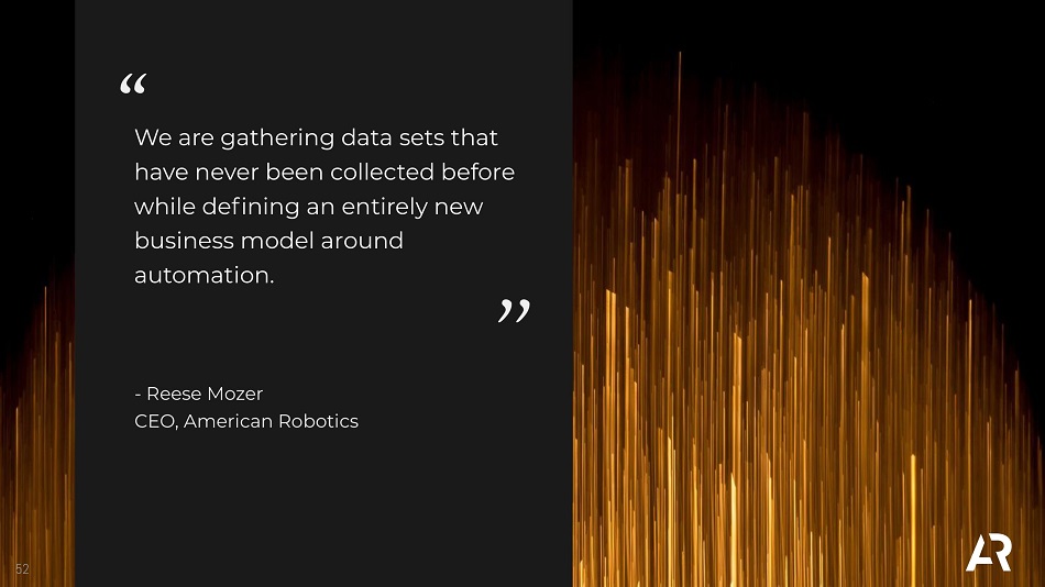 We are gathering data sets that have never been collected before while defining an entirely new business model around automation. " '' - Reese Mozer CEO, American Robotics 52