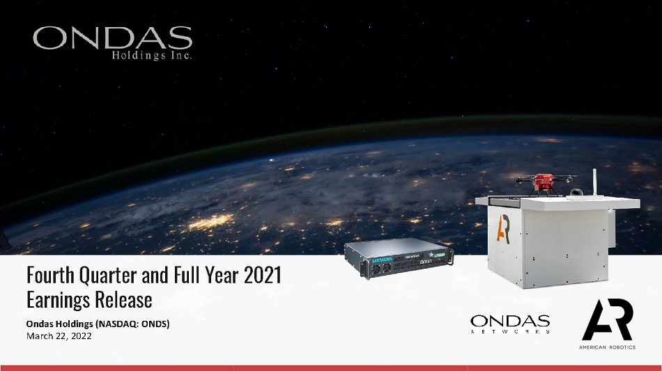Fourth Quarter and Full Year 2021 Earnings Release Ondas Holdings (NASDAQ: ONDS) March 22, 2022