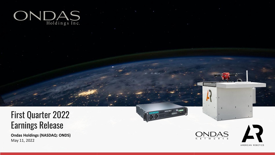 First Quarter 2022 Earnings Release Ondas Holdings (NASDAQ: ONDS) May 11, 2022