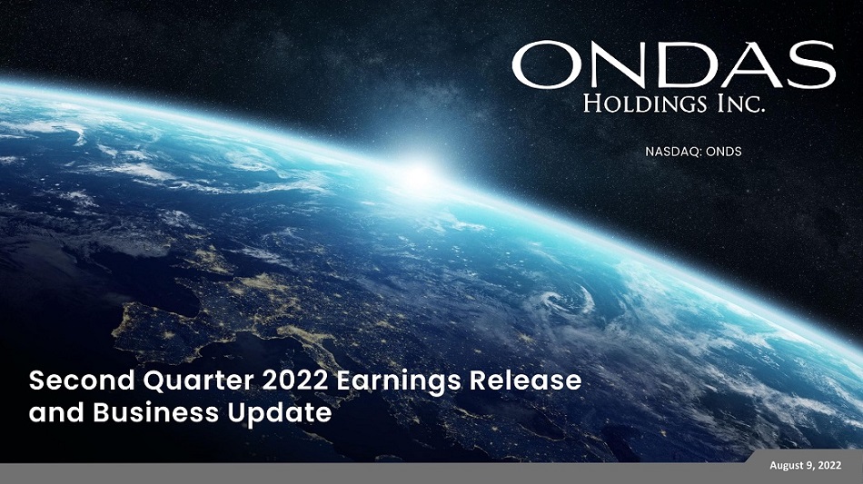 Secofid Quarter 2022 Earfiifigs Release afid Busifiess Update NASDAQ: ONDS August 9, 2022