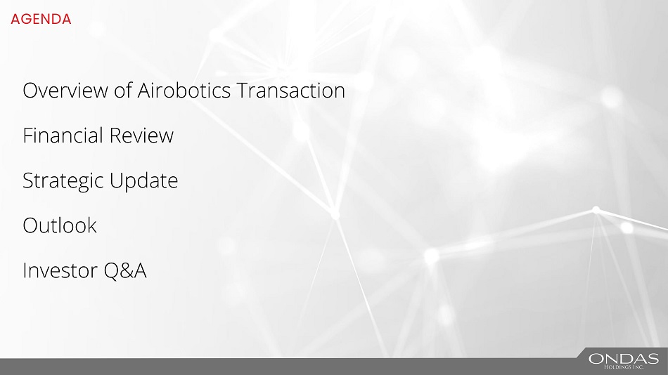AGENDA Overview of Airobotics Transaction Financial Review Strategic Update Outlook Investor Q&A