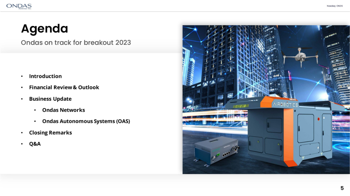 First Quarter 2023 Earnings Release Copyright 2023. All rights reserved. NASDAQ: ONDS | May 2023