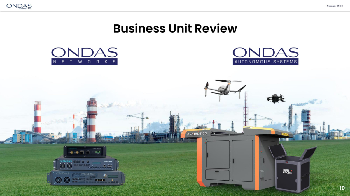 Nasdaq: ONDS Financial Outlook Significant revenue growth expected in 2023 • Reaffirming $26 – $30 million revenue target for 2023 • Tracking towards low end due to near - term supply chain challenges at Ondas Networks • Due to higher - than - expected EBITDA loss in Q1, we now expect full year EBITDA loss to be above original expectations • Target path to EBITDA break - even for Ondas Networks (Q4) and OAS (2H 2024) • Visibility on customer orders improving driven by • AAR announcements and deadlines • Customer engagement in UAE and US • Cash utilization expected to improve • Q1 cash burn high due to one - off factors • Normalized cash OPEX expected to be ~ $9.0 million in Q2 • Cost - cutting and revenue growth expected to drive lower burn LIQUIDITY OUTLOOK: • May pursue additional capital • Potential equity sources • Financial and strategic investors • Existing ATM facility • Potential (non - dilutive) working capital funding • Potential to adjust payment terms to include downpayments on purchase orders • Credit lines to fund inventory build 9