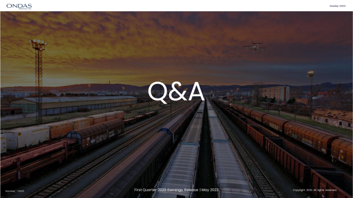 Nasdaq: ONDS 20 Q&A First Quarter 2023 Earnings Release | May 2023 Copyright 2023. All rights reserved. Nasdaq : ONDS