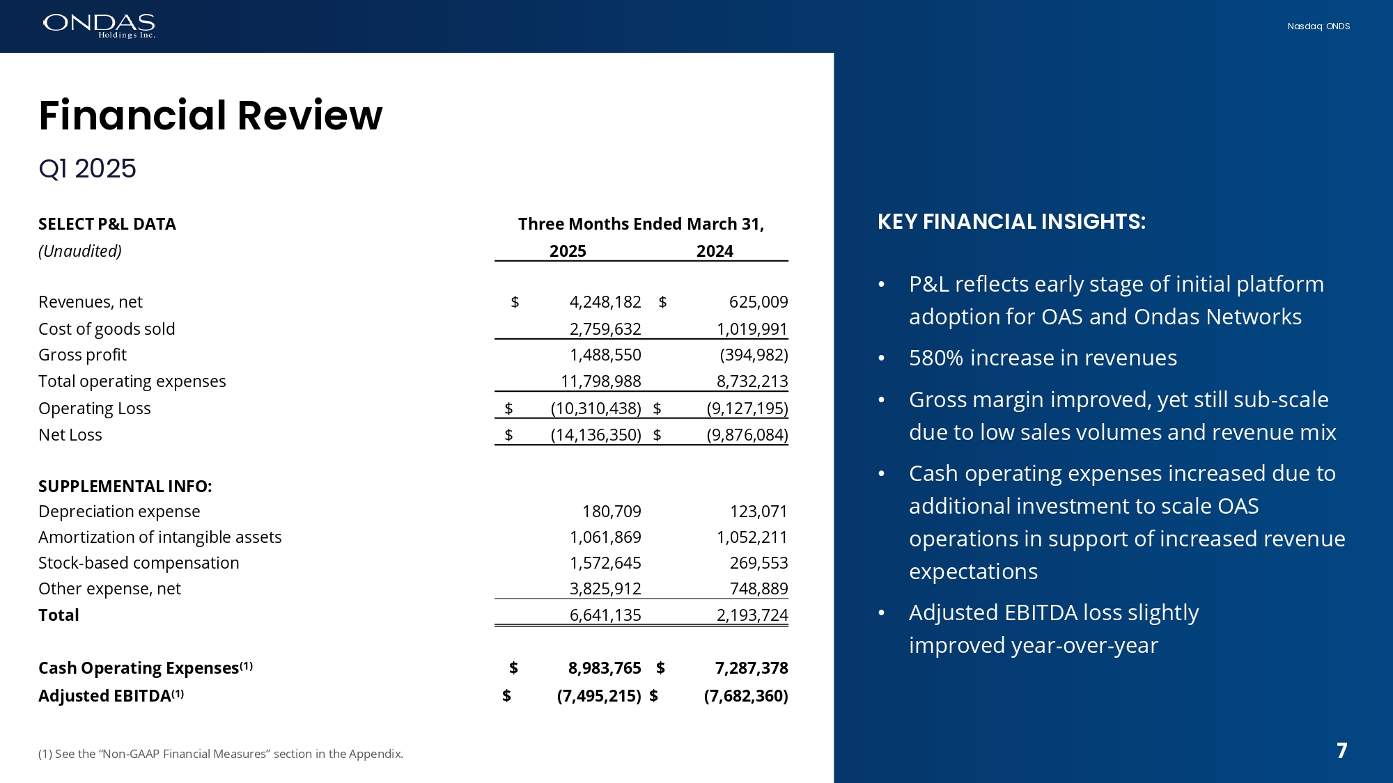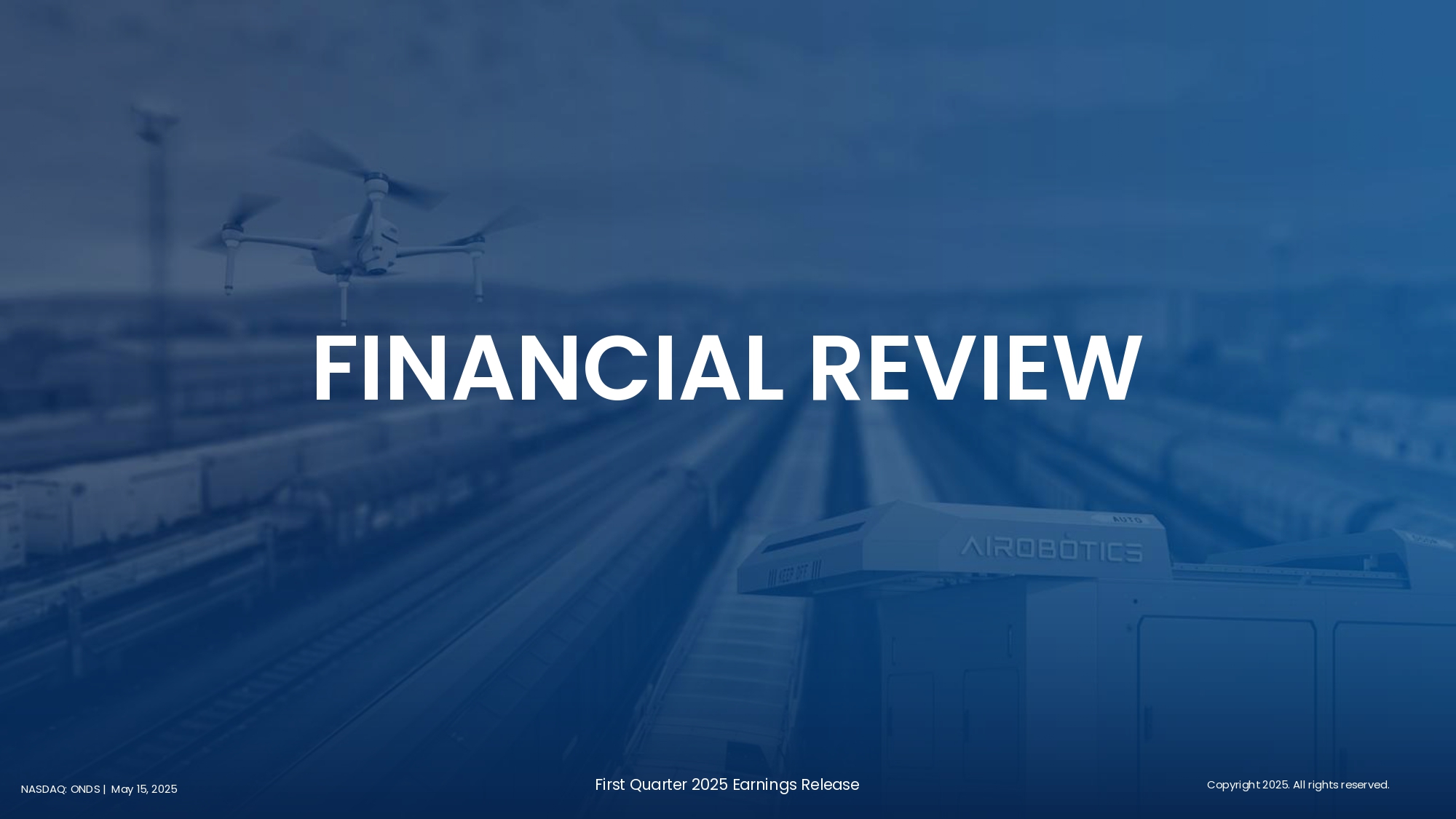 Nasdaq: ONDS 6 First Quarter 2025 Earnings Release NASDAQ: ONDS | May 15, 2025 FINANCIAL REVIEW Copyright 2025. All rights reserved.