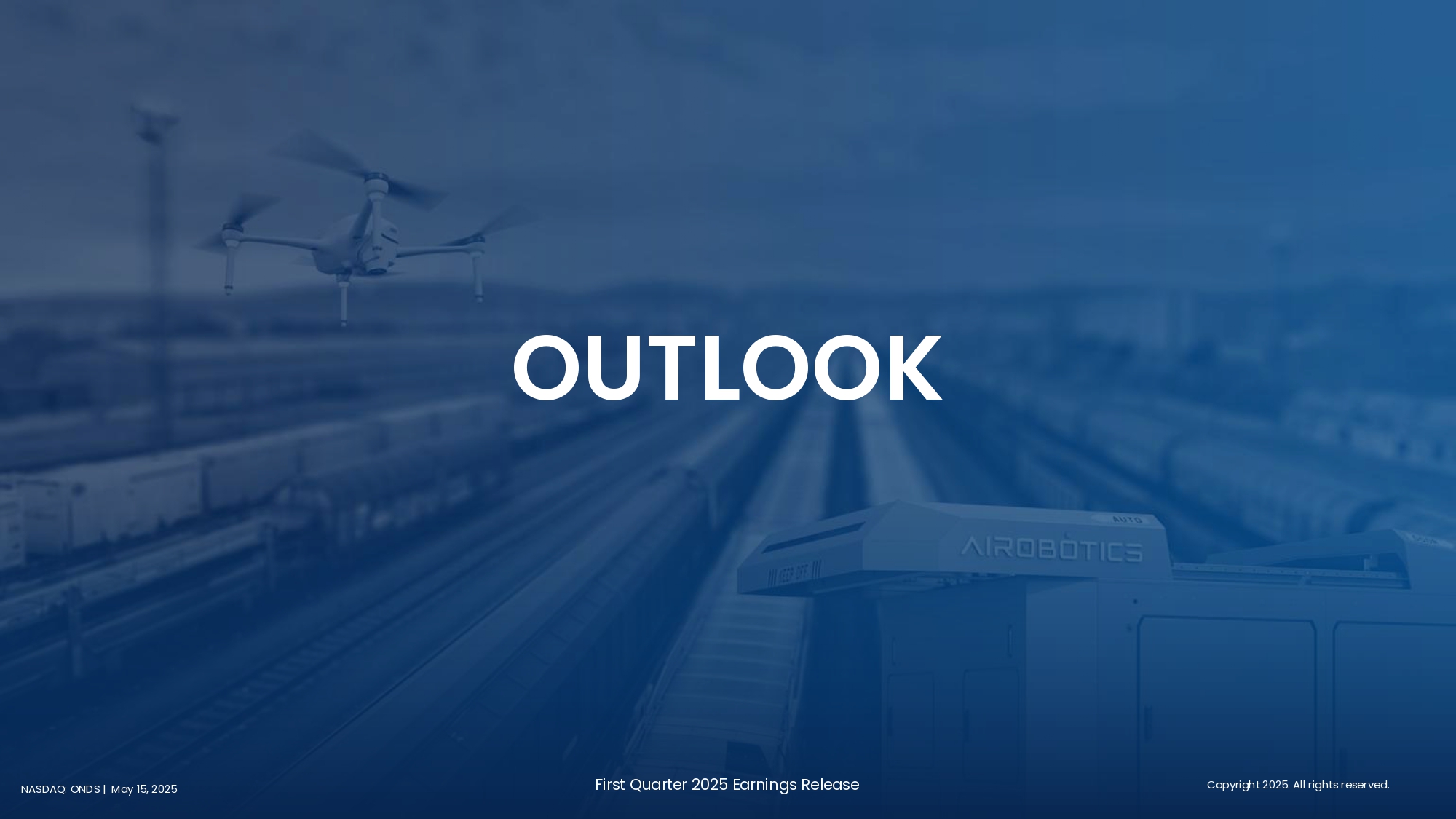 Nasdaq: ONDS 19 First Quarter 2025 Earnings Release NASDAQ: ONDS | May 15, 2025 OUTLOOK Copyright 2025. All rights reserved.