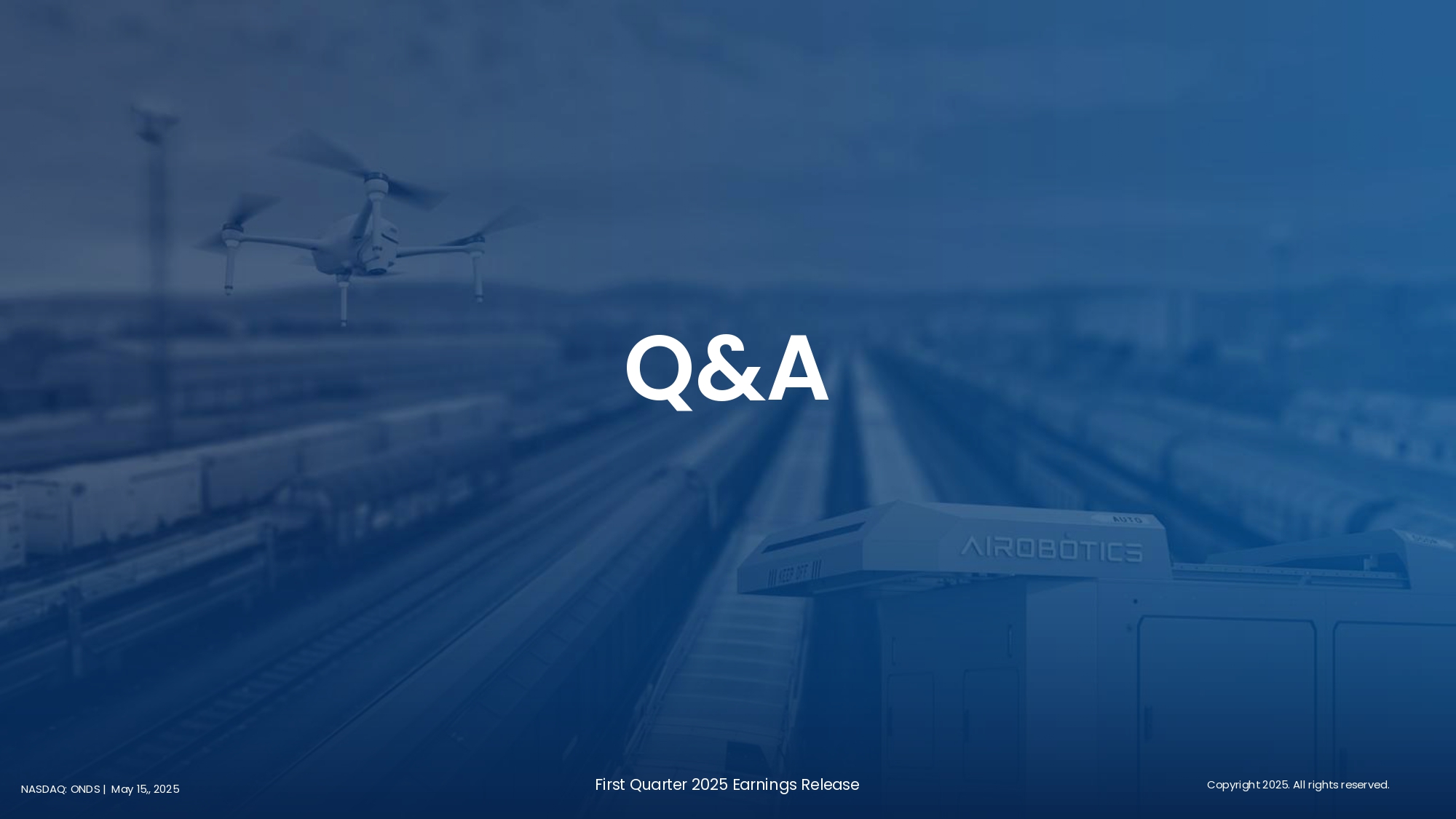NASDAQ: ONDS | May 15,, 2025 Q&A First Quarter 2025 Earnings Release Copyright 2025. All rights reserved.