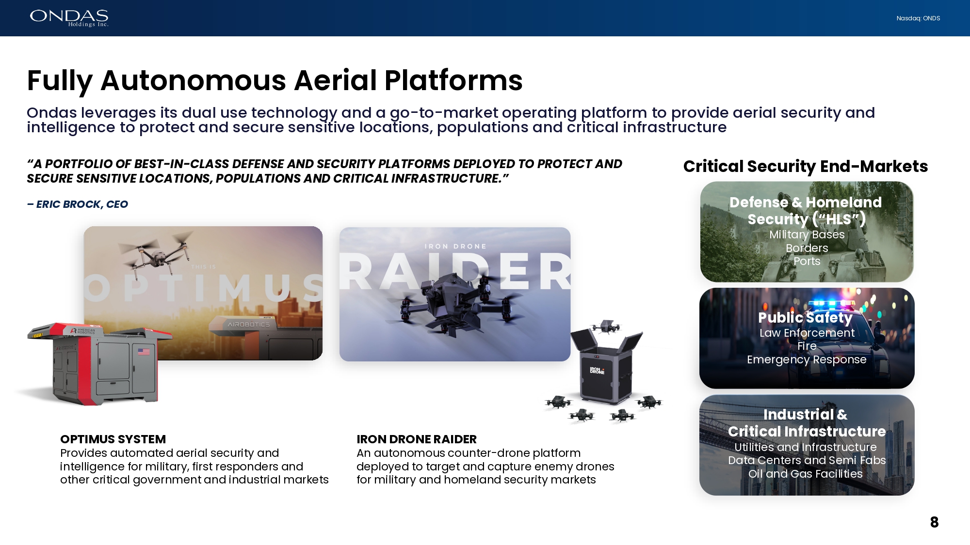 Nasdaq: ONDS 26 ERIC BROCK CHAIRMAN & CEO eric.brock@ondas.com Strictly Confidential NASDAQ: ONDS | June 2025 Copyright 2025. All rights reserved.