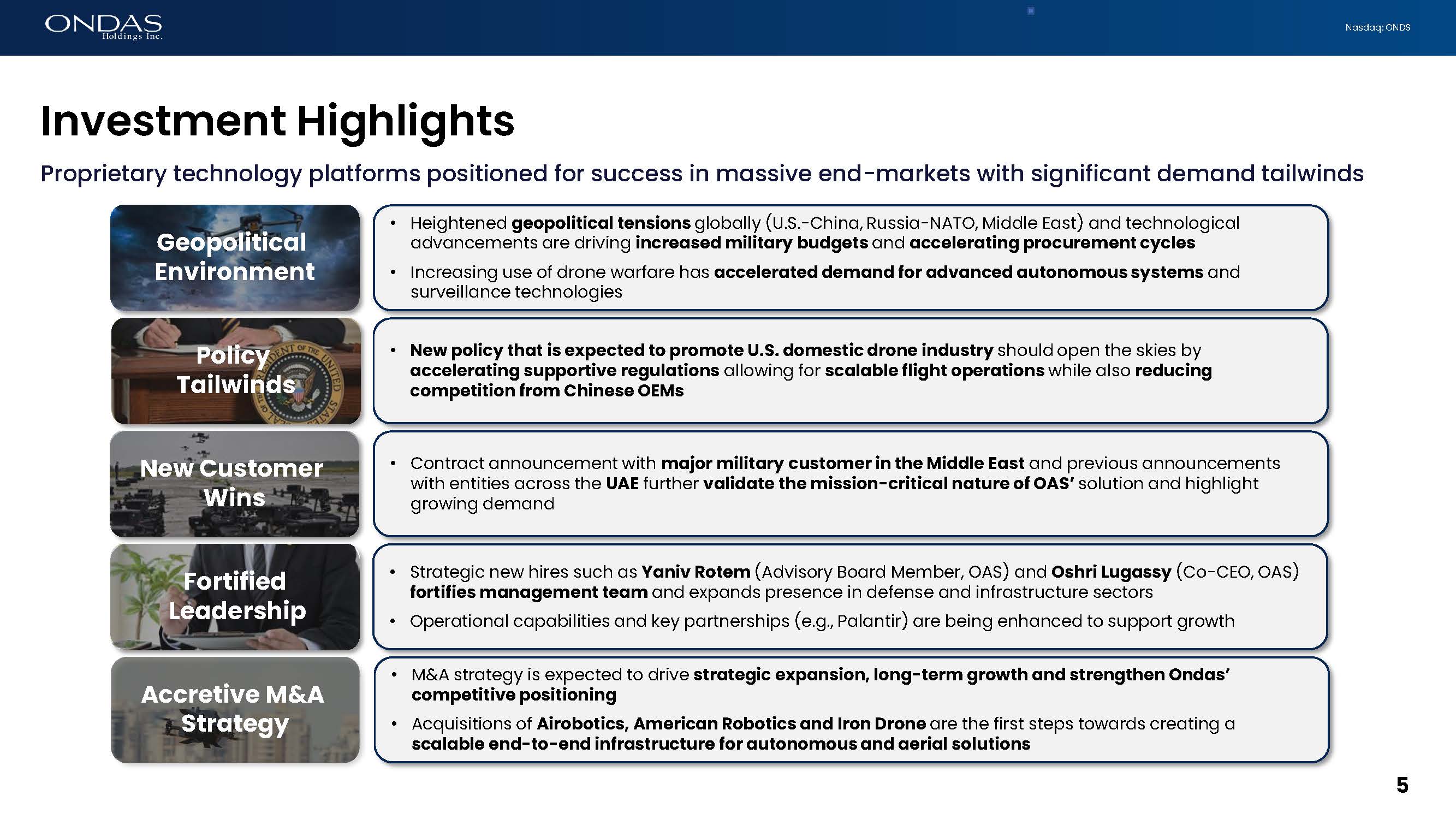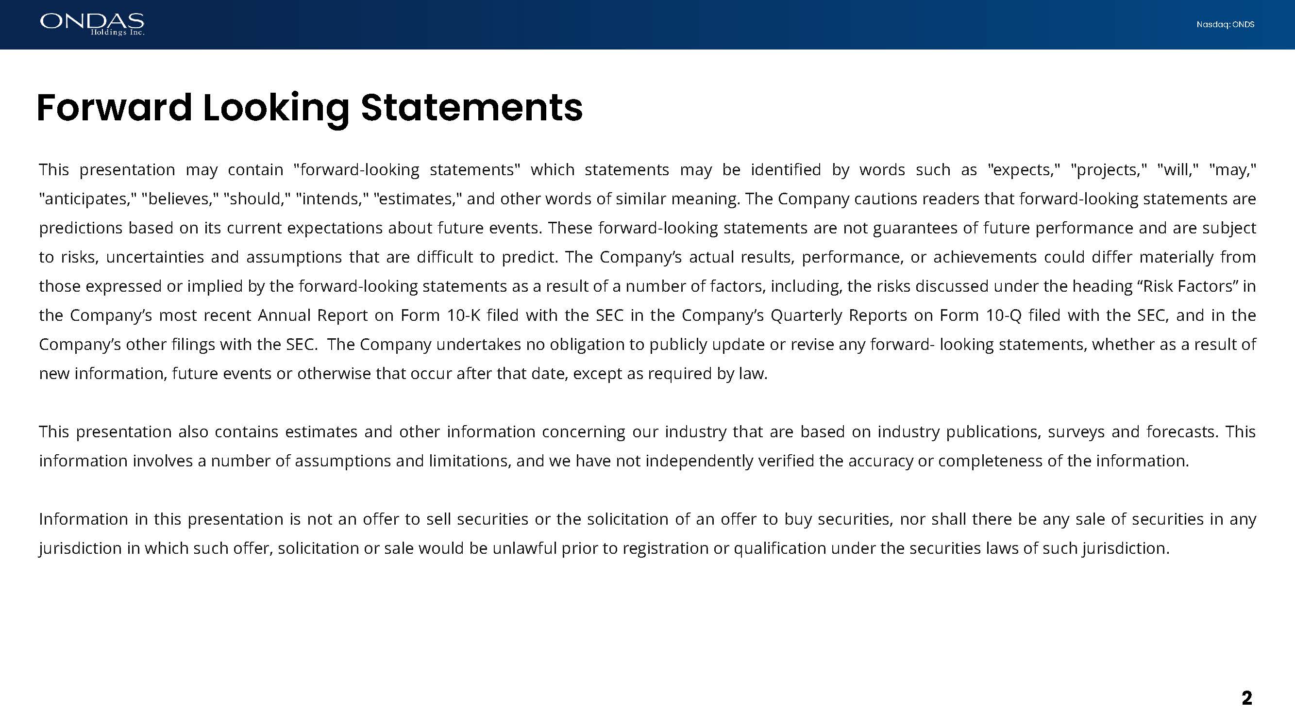 The current presentation of Ondas Holdings Inc. (the “Company”) is filed as Exhibit 99.1 to this report and incorporated herein by reference.