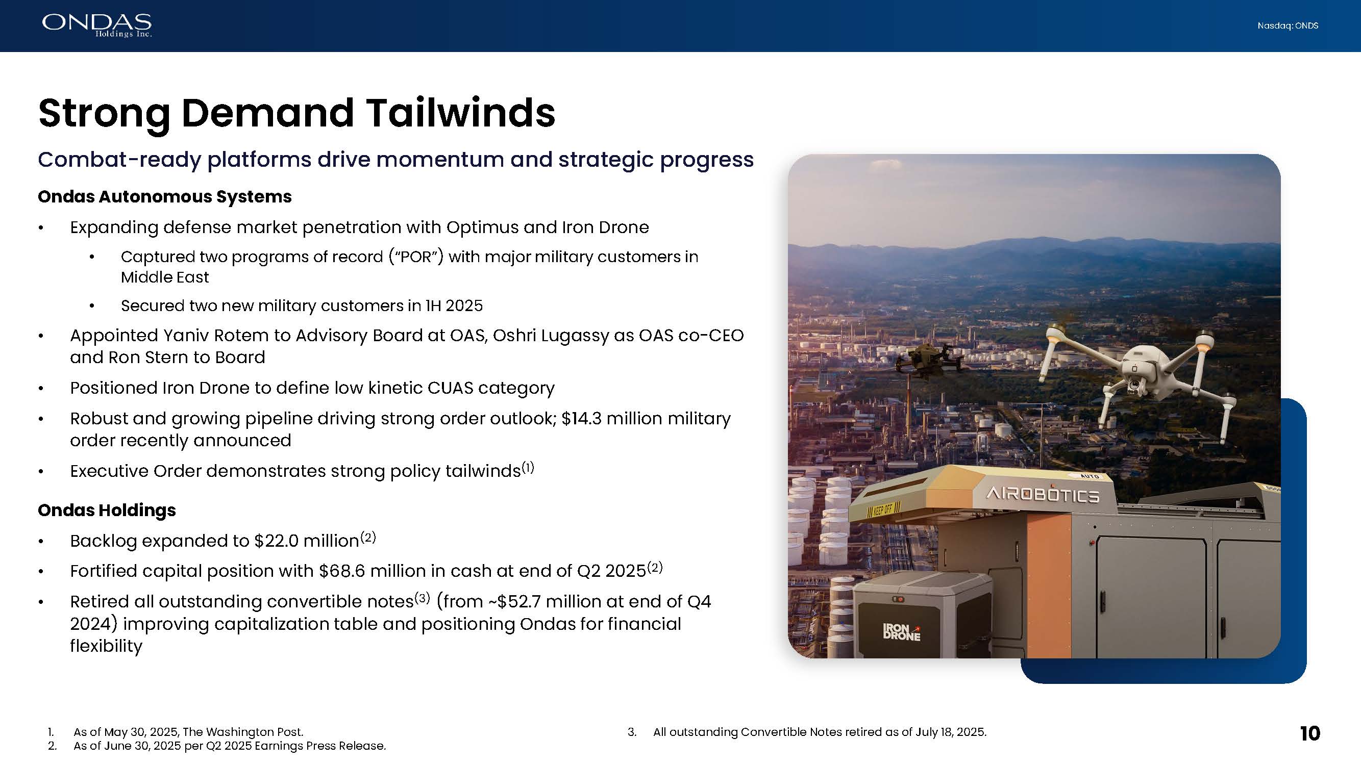 | Date: August 12, 2025 | ONDAS HOLDINGS INC. | |