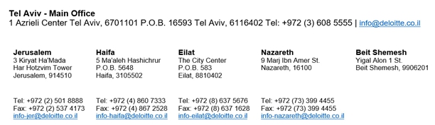 | Ordinary shares A of NIS 0.01 par value | 200 | - | ||||||